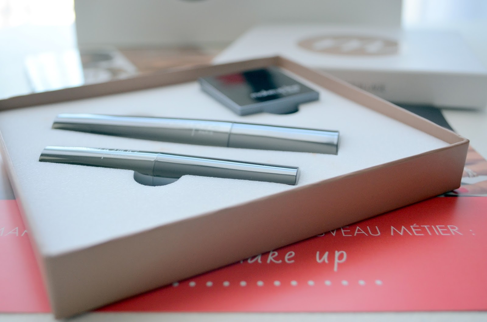 Mon coffret est composé de trois produits et d’un petit guide avec un pas à pas pour réaliser notre make-up. En effet, le but étant d’être autonome. Il existe 18 coffrets au choix de quoi trouver son bonheur. Pour ma part, j’ai reçu Dressy Style. Il se compose d’un rouge à lèvres « Soft Cherry » teinte rose cerise, d’un mascara Volume Effect et d’un duo de fards à paupières Luxury duo Noisette et Goyave. Tout ceci avec le livret d’accompagnement bien entendu.