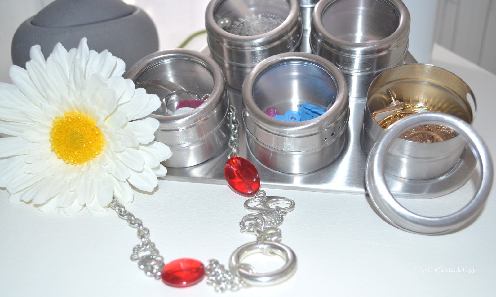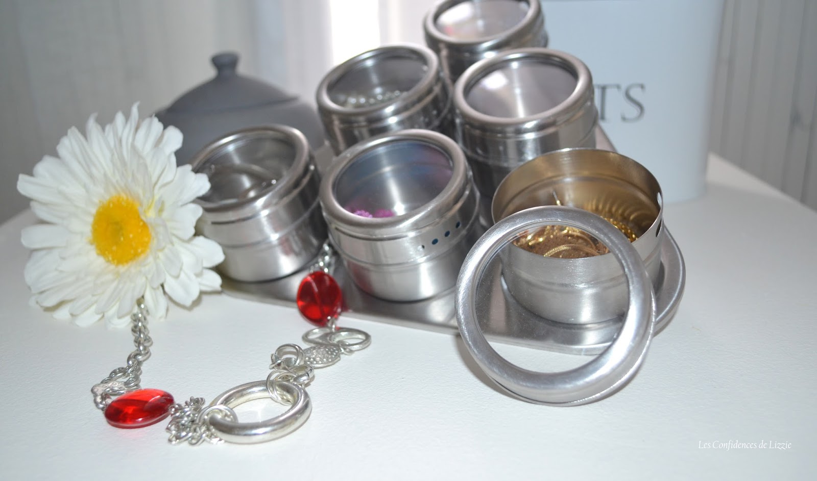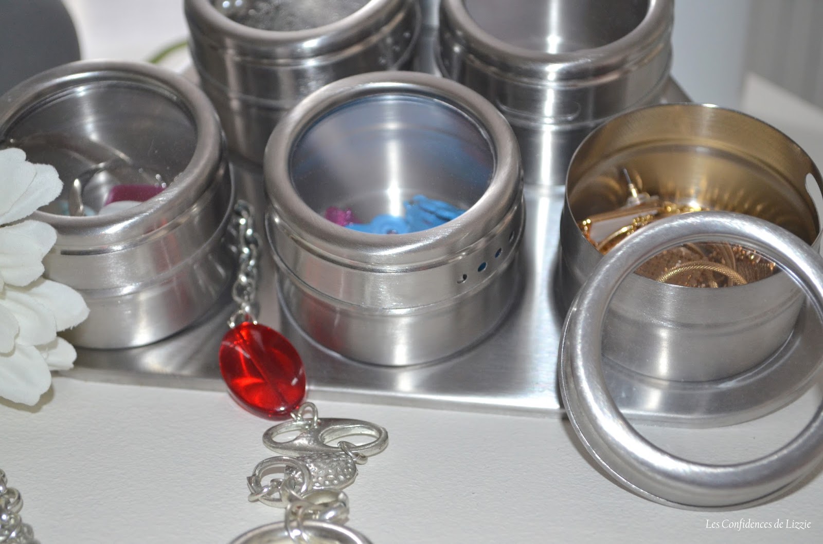 Sympa tes détournements de rangement à bijoux, moi ça la cata il y'a encore une bague que je cherche partout depuis 2 jours ;/ faudra que je pense à acheter un porte épice!