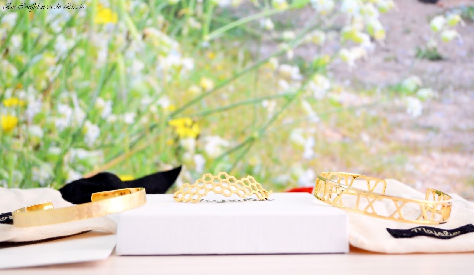 Je ne suis pas fan de doré,; mais j'aurais choisi les mêmes en argent. En particulier le bracelet ruche qui est très original et pour des prix accessibles.