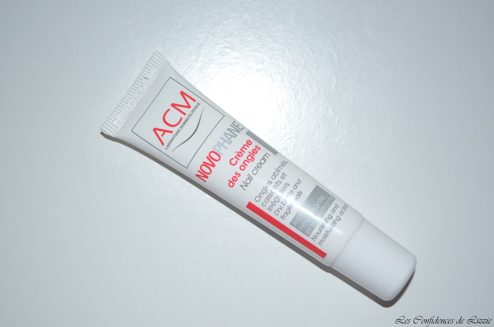 Ce fut très dur d’arrêter de ronger mes ongles mais je veux avoir de beaux ongles et mettre du vernis alors stooop ! Cela fait deux semaines que j’ai arrêté! Du coup, vous vous doutez bien de l’état de mes ongles. Ils étaient très cassants et fragilisés, j’ai donc opté pour une crème spéciale : ACM Novophane.
