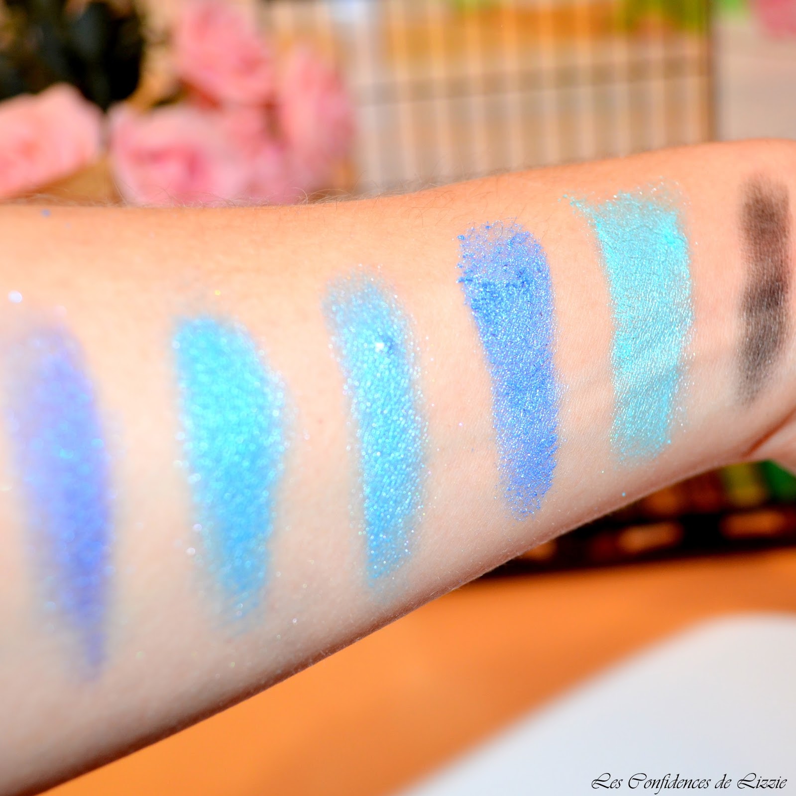 Coucou. Cette palette est vraiment au top. Pour six euros, je suis super bluffée de la pigmentation des bleus. Une jolie découverte. Merci et belle journée ! Des bisous !