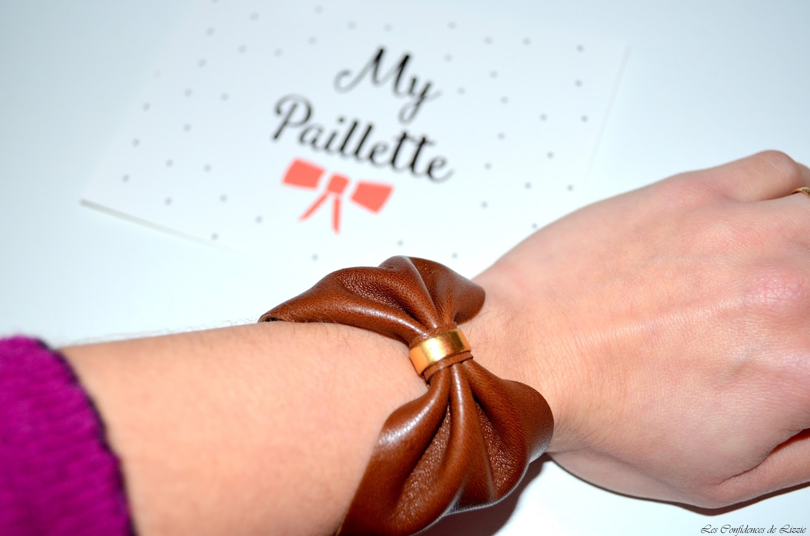 J’ai craqué sur une manchette marron avec une alliance dorée. Ce bijou a été réalisé par Little Madame, une créatrice présente sur la boutique My Paillette.