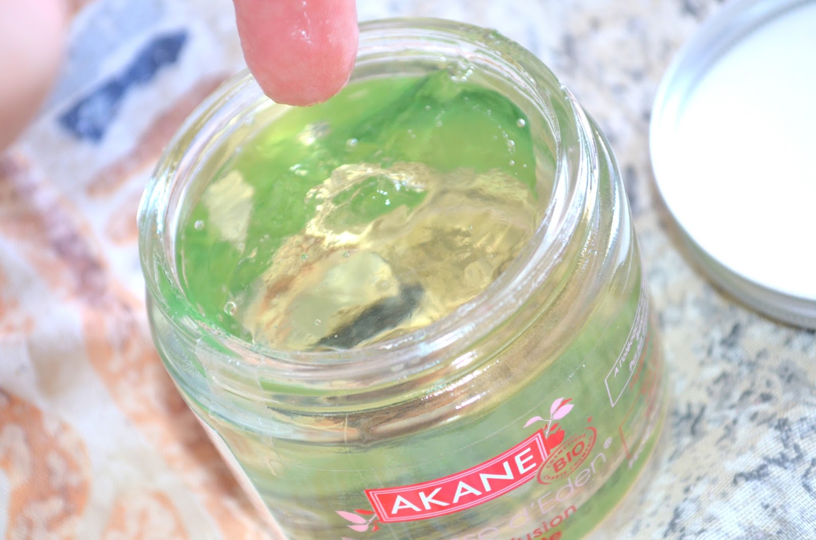 La marque de fabrique d’Akane Skincare est bien là. La gelée est tremblante telle une vraie gelée. Rien à redire, pas de surprise. Lors de la prise en mains, cela est assez déroutante. On a la sensation de ne rien avoir entre les doigts.