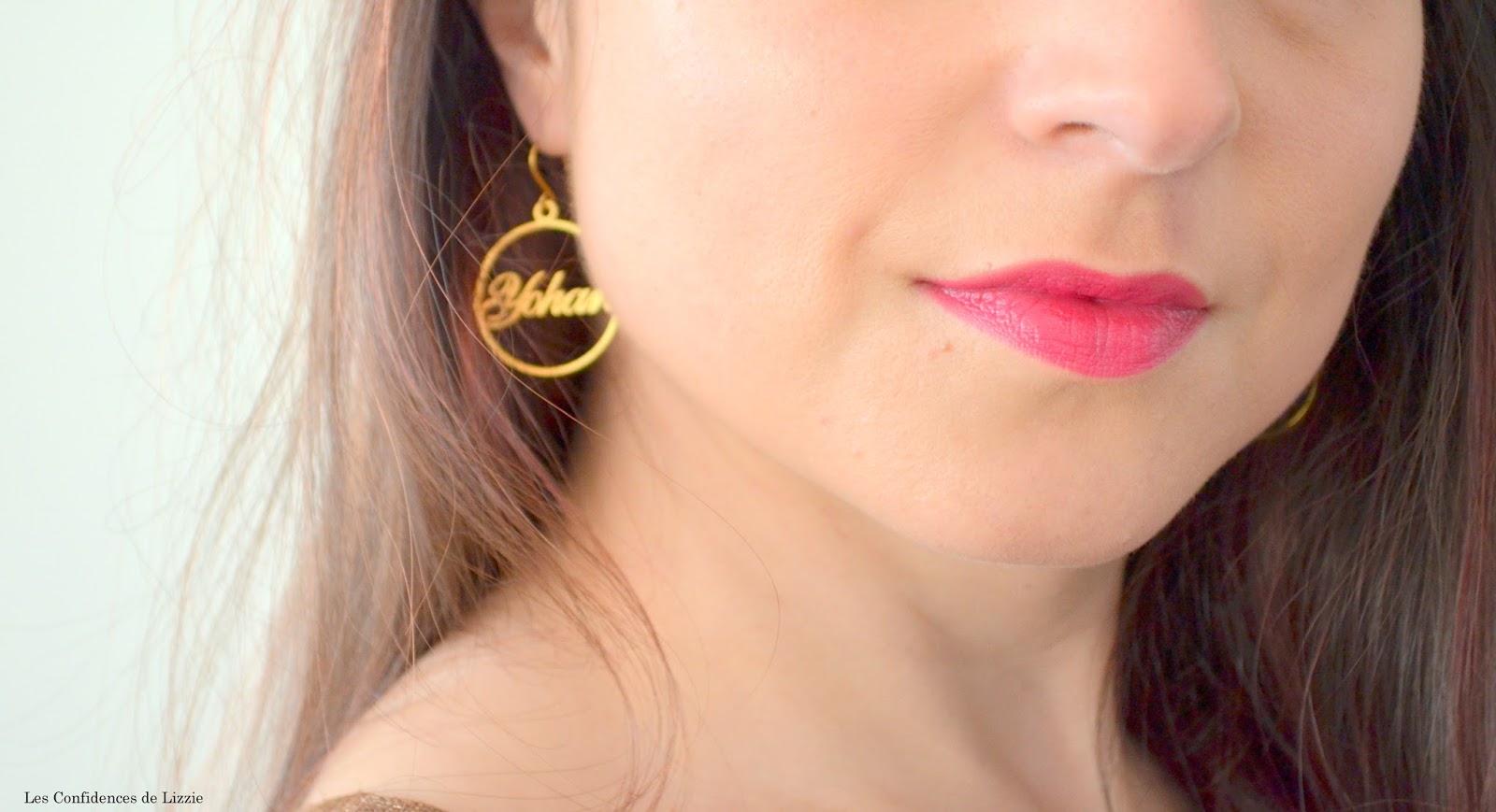 J’ai eu un vrai coup de cœur pour ces boucles d’oreilles cercle. J’ai demandé à ce que se trouve sur chaque boucle le prénom de l’un de mes enfants. Du coup, chaque boucle d’oreilles est personnalisée et singulière.