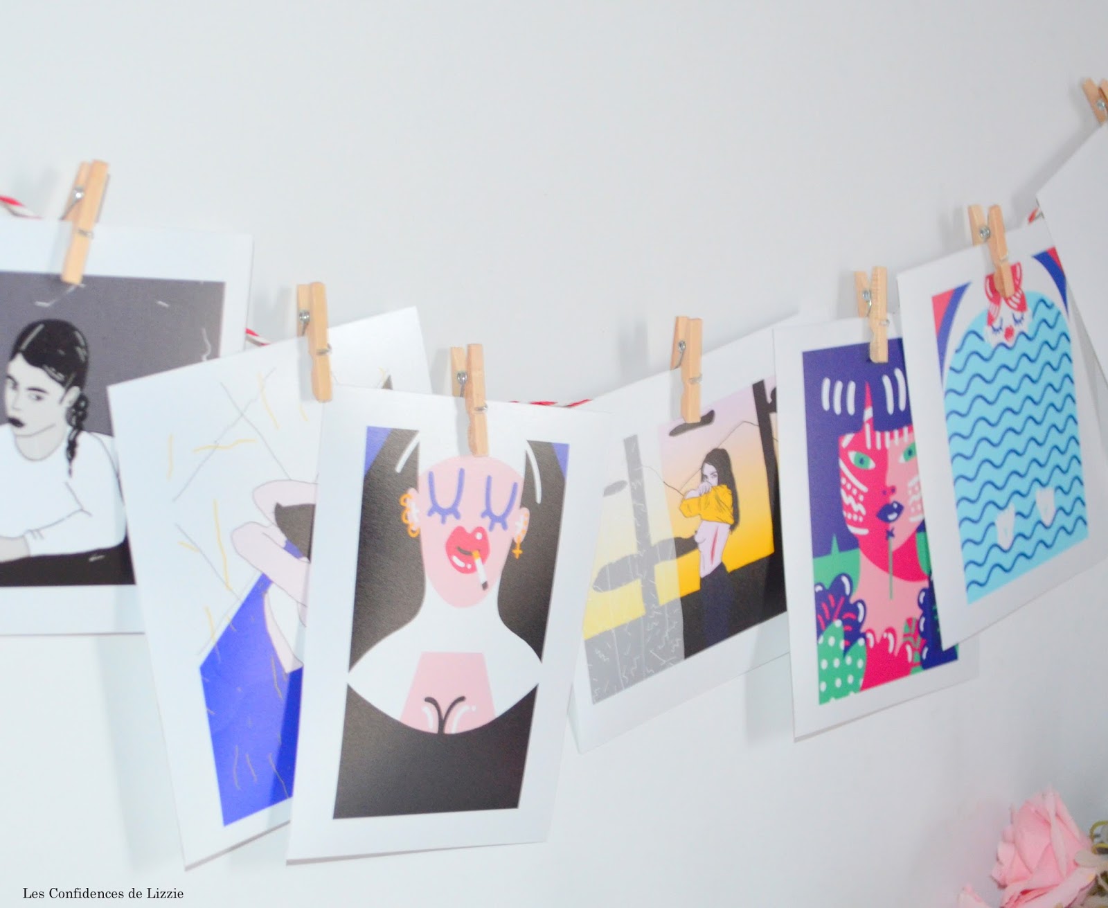 c'est une super idée, cela permet qui plus est de changer de déco au grès de ses envies grâce aux pinces et pour cette édition, les œuvres sont sublimes et colorées : j'adore !!!!