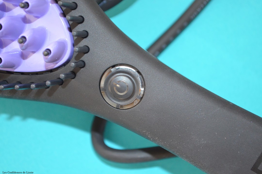 La brosse est très simple d’utilisation. Il suffit de la brancher sur secteur et d’appuyer sur le bouton ON. Quelques secondes plus tard, la brosse est prête 😀