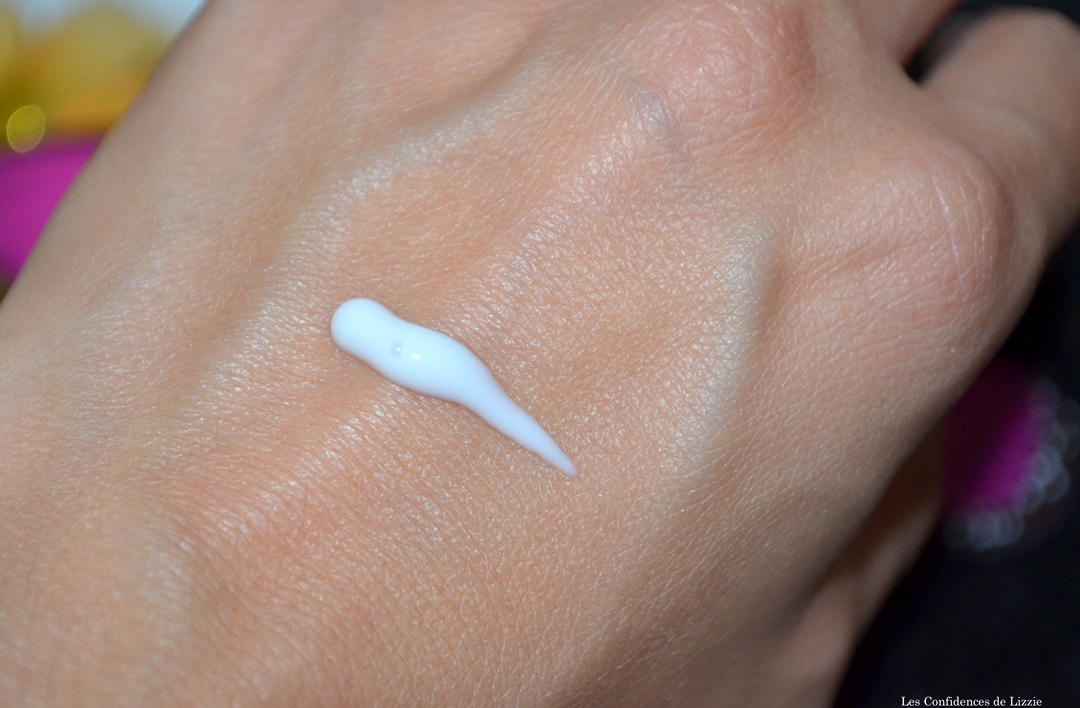 Peu de quantité suffit pour parfaire l’intégralité du visage. En effet, j’applique 2 noisettes. La peau est hydratée juste ce qu’il faut.