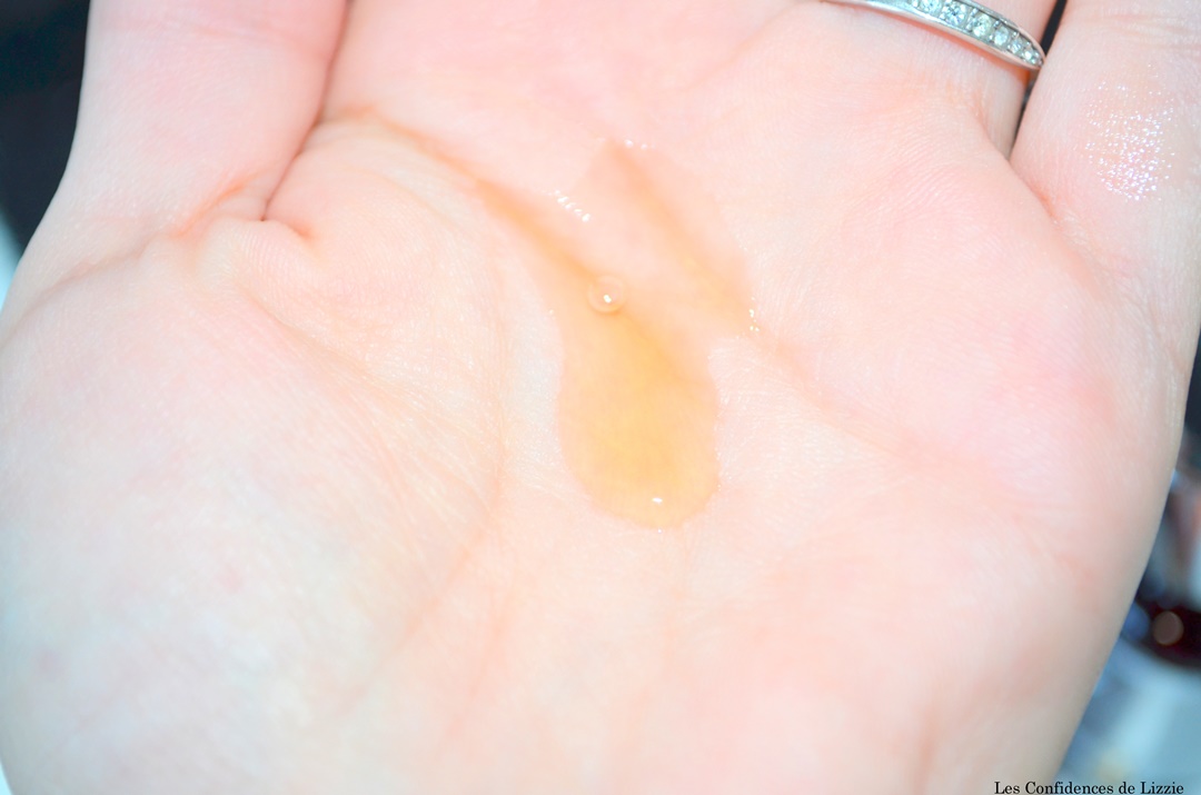 La texture est fluide et plaisante. Rien de huileux mais une galénique très légère et agréable. Le sérum pénètre rapidement dans la peau, il est sans parfum. Il laisse un très léger film collant. Néanmoins, cela reste quelques secondes puis disparaît avec l’application de la crème hydratante. Dès lors, la peau est douce et rebondie.