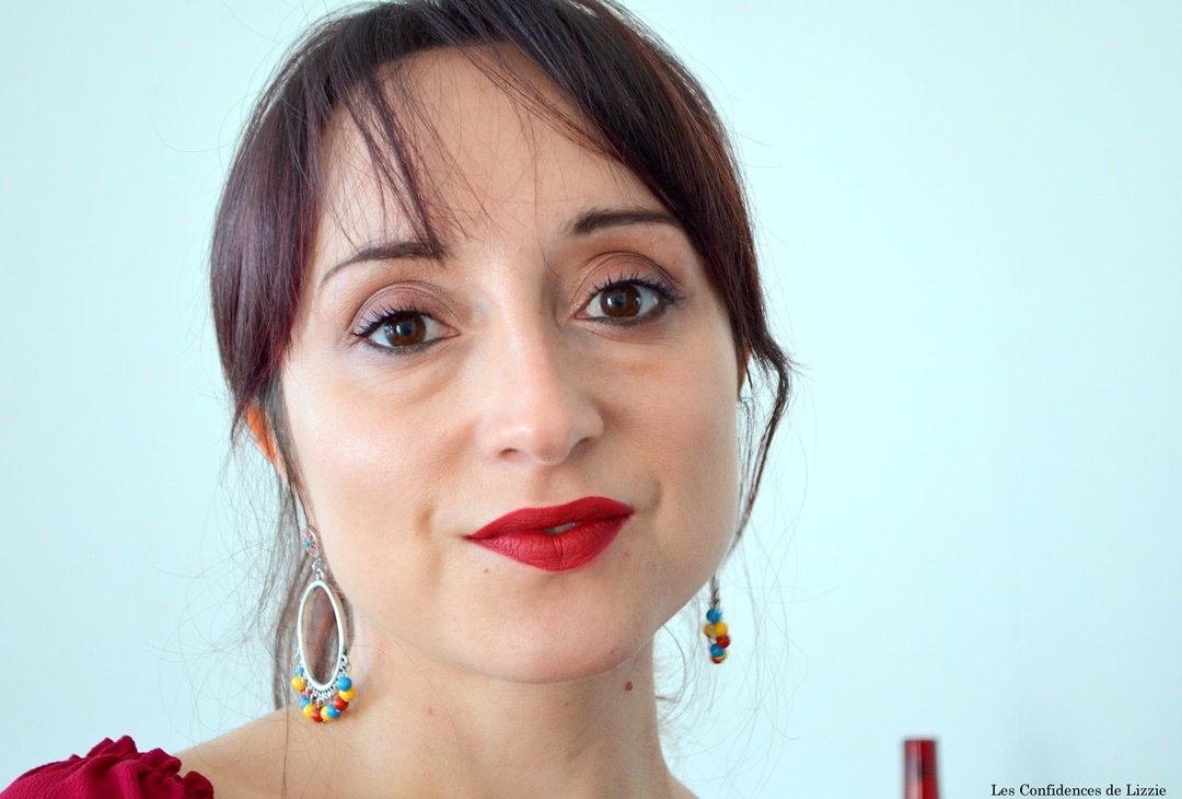 – Pour un maquillage plus glamour, ajoutez un trait de liner ou un rouge à lèvres rouge comme je l’ai fait ci-dessous.