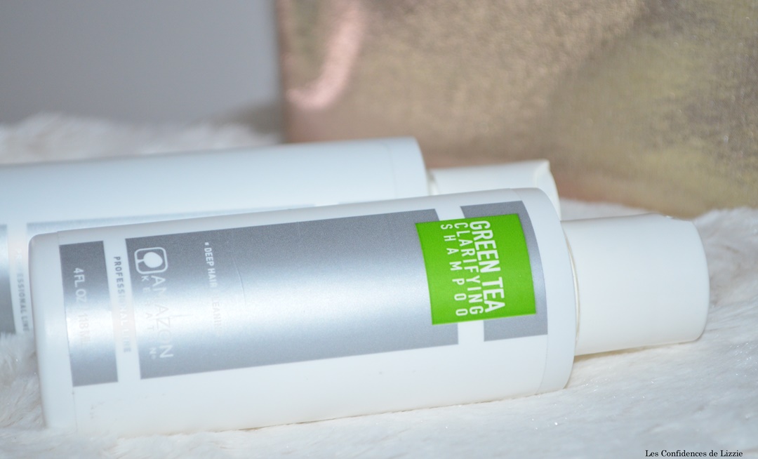 Le shampoing Green Tea Amazon Keratin est présenté dans un petit flacon de 118ml. Muni d’un bouchon clapet, la prise en mains est facile. Il est nécessaire d’enlever l’opercule avant la première utilisation. La texture du shampoing est assez fluide et transparent. Son parfum est intense et tranché : une senteur fruitée et féminine. Peu de quantité est nécessaire pour un lavage des cheveux en profondeur.