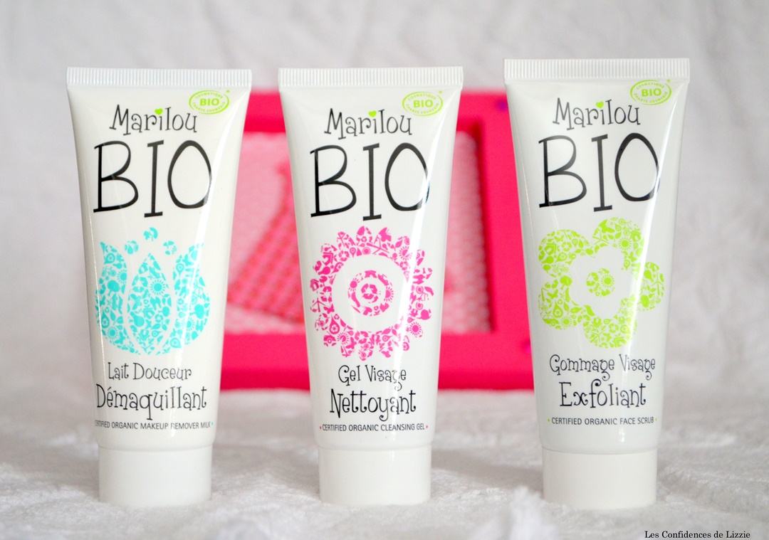 Lorsque l’on me parle de soins à petits prix, je suis toujours curieuse mais quand en plus ils sont labellisés BIO alors là, je ne résiste pas ! J’ai eu le bonheur de recevoir 3 produits de beauté BIO issus de la gamme visage de la marque Marilou Bio. Je n’avais jamais testé malgré le grand nombre de revues positives lues. Autant vous dire qu’il était temps que je me fasse une idée sur les soins naturels de cette marque. Dans mon petit paquet se trouvait le gel visage nettoyant, le lait douceur démaquillant et le gommage visage exfoliant. Ces 3 cosmétiques bio démaquillent et nettoient le visage avec douceur. Allons les découvrir 😀