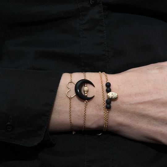Côté bracelet, vous dénichez du classique, du sobre, du raffinement et comme toujours de l’originalité et de l’authenticité. Big crush pour le bracelet Black Moon. Il est doré à l’or fin 24 carats 3 microns & la lune est taillée. Il se porte à merveille en accumulation.
