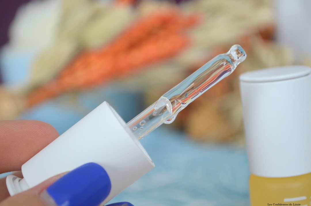 Les flacons de 15ml sont jolis et élégants. Le packaging est épuré et délicat. Je trouve que c’est vraiment plaisant. Les bouchons blancs sont en plastique ABS, recyclable à 99%. Ils sont pratiques. Il suffit de le tourner pour ouvrir le sérum pour le visage vegan. Une légère pression est nécessaire pour remplir la pipette et faire sortir la juste dose de produit. Il en faut très peu. Ainsi, je prélève une goutte de chaque flacon que je dépose dans la paume de ma main. Un must? La pipette aspire automatiquement le cosmétique sans piéger les bulles d’air. Grâce à son capuchon design spécialement conçu pour une utilisation simple et rapide, nous avons un produit de beauté qui s’emploie sans tracas.